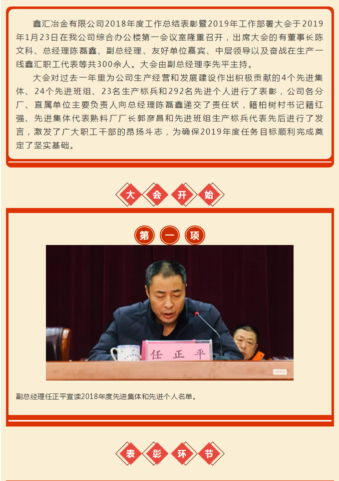 鑫匯冶金有限公司2018年度工作總結表彰暨2019年工作部署大會隆重召開!