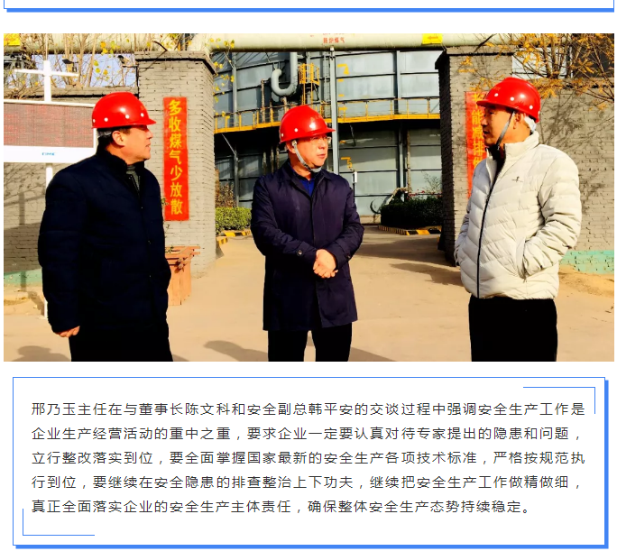 武安市人大主任邢乃玉蒞臨鑫匯公司進行安全檢查指導工作