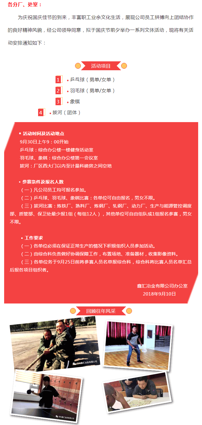 鑫匯公司關(guān)于舉辦國慶節(jié)文體活動(dòng)的通知
