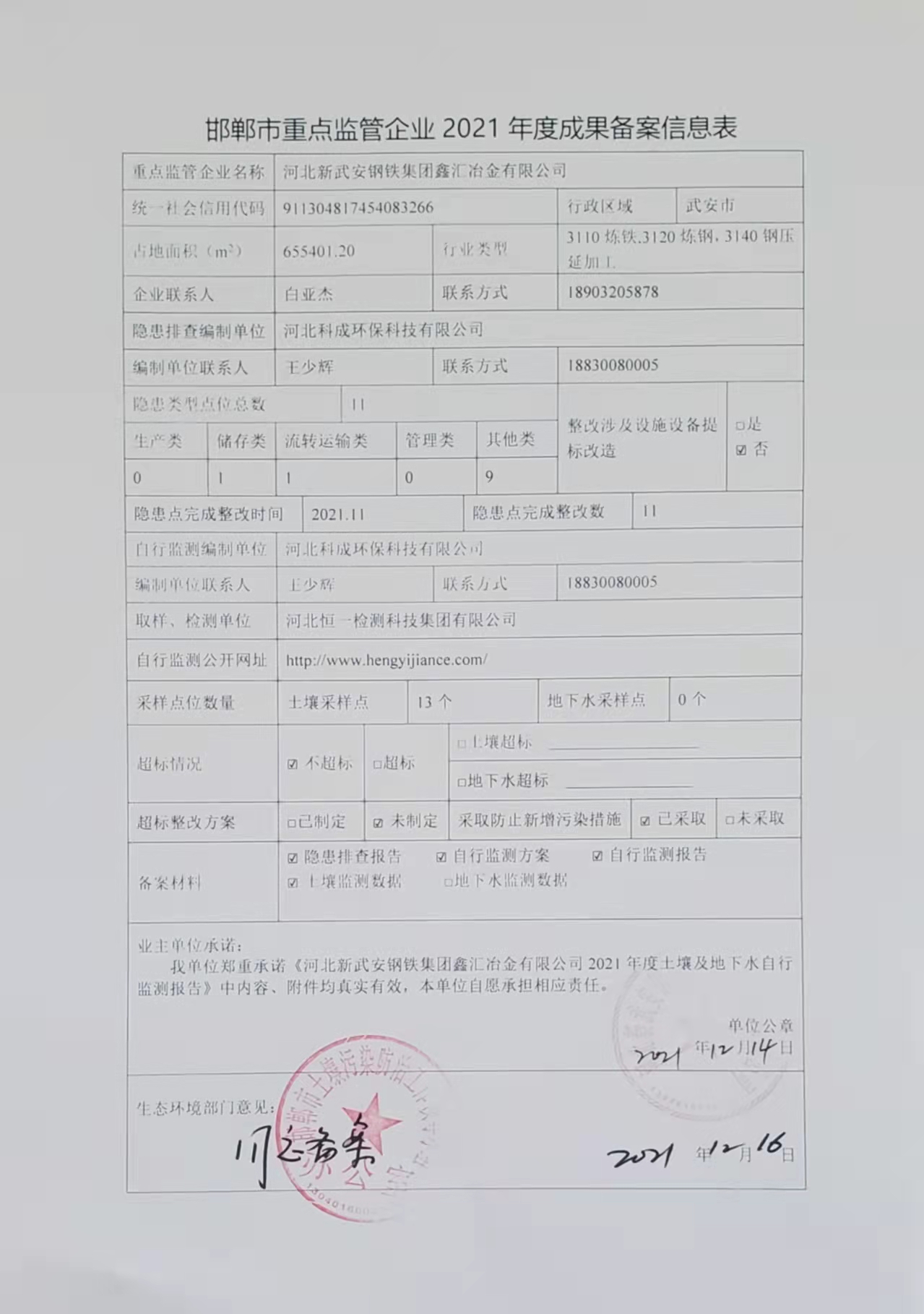 鑫匯有限公司清潔生產(chǎn)信息公示